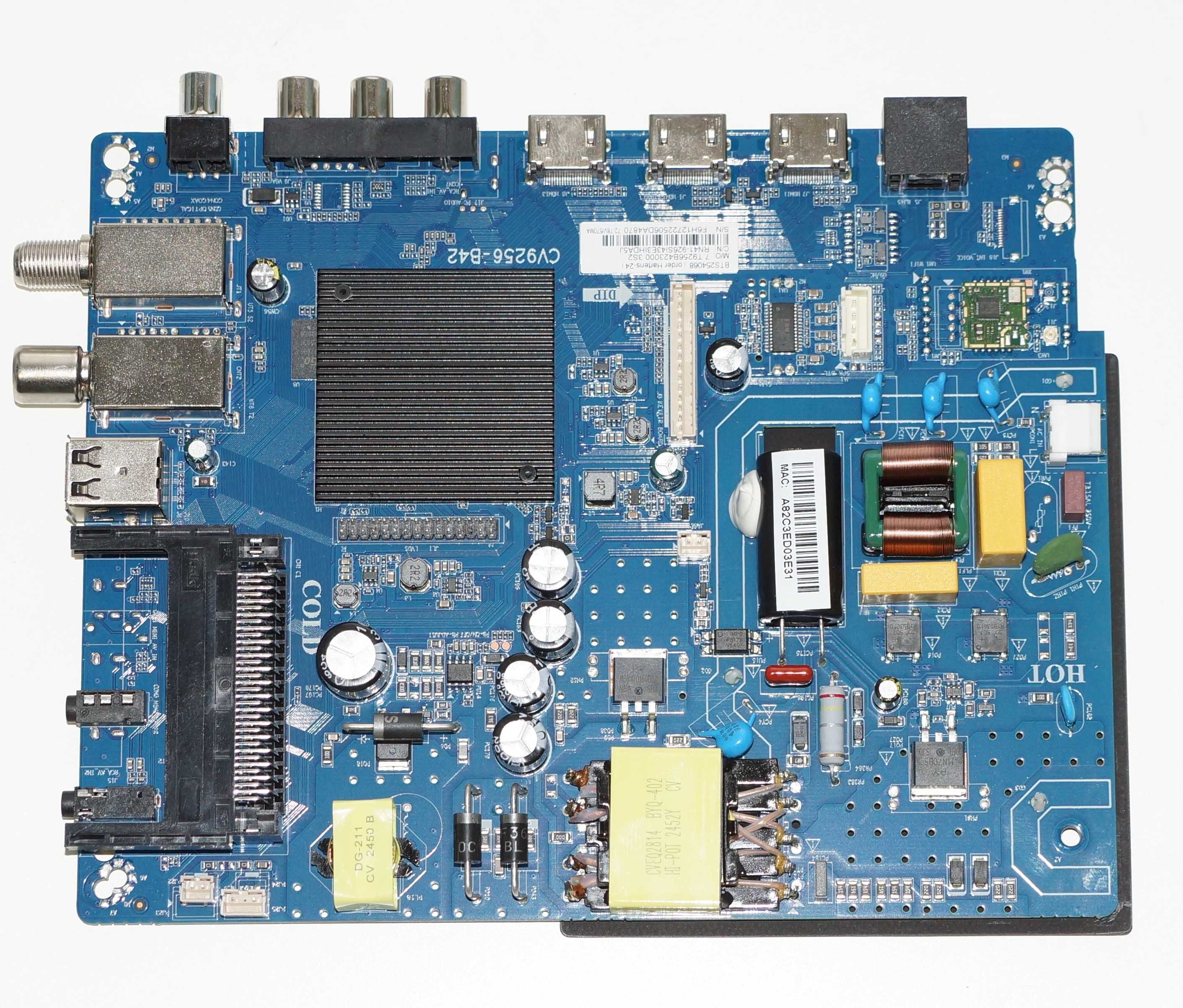 При выборе блока CV9256-B42 для телевизора HARTENS HTY-43F06B, HTY-43F11B внимательно сверяйте свой блок с фото на нашем сайте, обращая внимание на его размер, расположение разъемов и слотов, сверяйте расположение электронных компонентов блока.