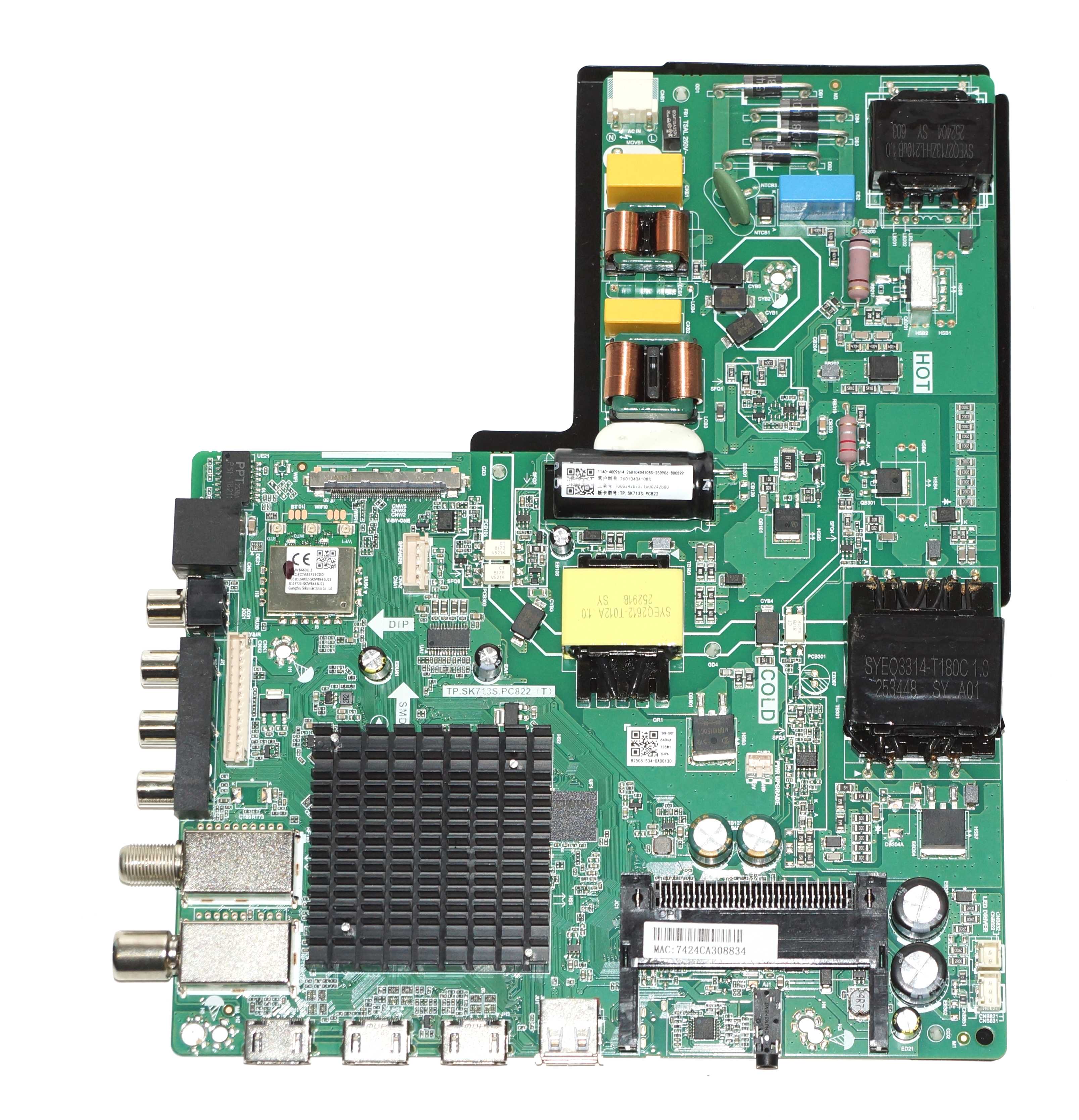 При выборе блока TP.SK713S.PC822 (T) для телевизора HTY-55QLED11B-HA24 внимательно сверяйте свой блок с фото на нашем сайте, обращая внимание на его размер, расположение разъемов и слотов, сверяйте расположение электронных компонентов блока.